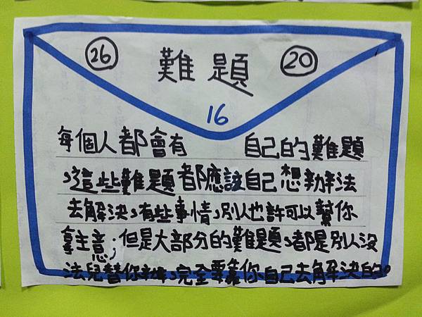 除了練習如何從文章裡找重要表達句之外,還可以成為班上的好品格提醒小語,又能做教室布置,一舉數得唷!