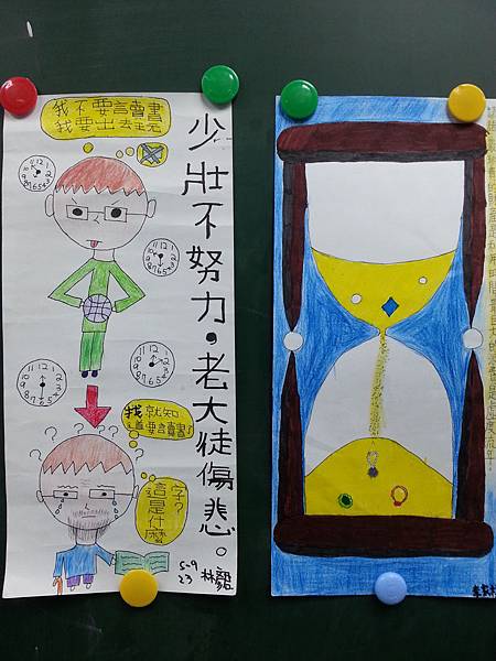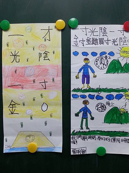 國語第一單元主題是珍惜時間,統整活動一也提到許多時間格言,因此班上就來舉辦一個小小的時間格言標語設計比賽。