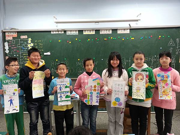 陳老師先做基本的初選後,有十幾幅作品皆屬佳作,再聘請學校美勞老師為我們班挑出六件優選。