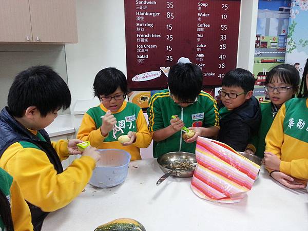 從同學們的動作中,看得出有大多數的人平時很少下廚房,有幾個同學已經具有小廚師的架勢。平時很少下廚房幫忙的同學們,今天可要好好學習。陳老師希望大家能學習做家事,才能體會爸爸媽媽爺爺奶奶的辛勞。