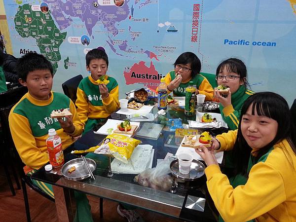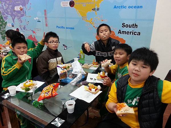 唯一美中不足的是,要調味的時候竟然一直找不到沙拉,原來是陳老師忘記帶沙拉了,讓同學們吃原味,呵呵!辛苦各位同學了!