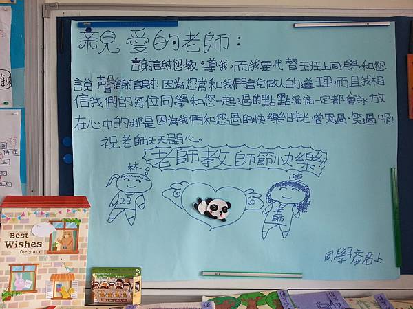 此張海報大的卡片,目前已被列為「陳氏世界紀錄之最大張教師卡」!我被這孩子的真誠感動,她手繪的Q版陳老師真是太讚啦!套句小朋友愛用詞~超喜歡滴!