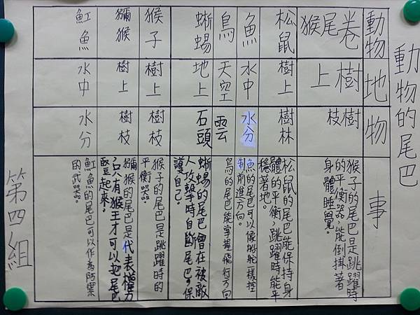 (第八課動物的尾巴 課文結構圖 分組作品 / 文體 / 說明文)