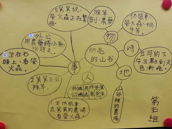 到了高年級,學生要能掌握文章結構,摘要能力就更需要訓練了!而且越高年級,孩子之間的閱讀理解能力差異性更大,因此,異質性分組的小組討論模式,就成為我在班上常運用的方法了!一方面可以建立孩子們自學、共學、找答案的能力,另一方面則是把上課說話的時間還給孩子,把學習求知的主權交給他們!讓孩子們感受到求學是為自己負責!而學習目標不是只為考試,更在於建立各種能力及培養與人溝通的良好態度。