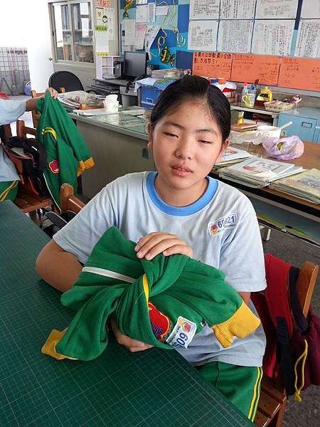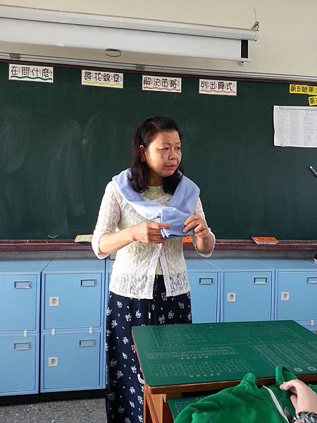 接著牧群老師示範壽司捲摺法,接著又把外套當成小披風或是單手穿過二隻袖子可以將外套掛手上而不會弄丟等,其中最厲害的一招是在短短幾秒鐘摺好一件T恤,這快速摺法彷彿像在變魔術,讓孩子們大開眼界。