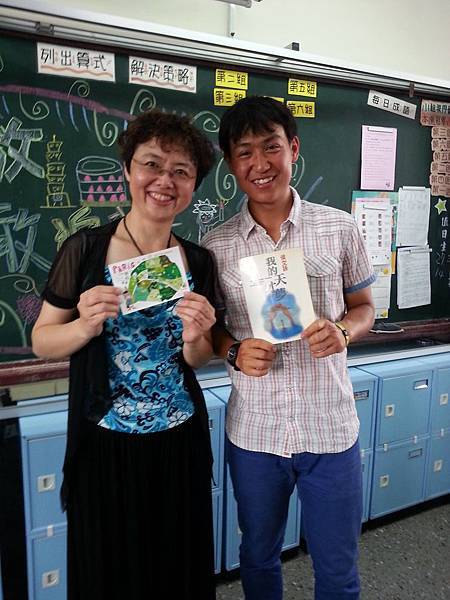 阿奇說,小四的時候,我送他一本書是侯文詠的「我的天才夢」,那本書影響著他,哎呀,我已經忘了這件事了,但是我想,我那時一定有送他的理由。今天阿奇帶來侯文詠的最新力作「請問侯文詠」,送給學弟妹們,感謝阿奇唷~我也帶著阿奇去法國時寄來的明信片,我們一起合照一張作紀念。